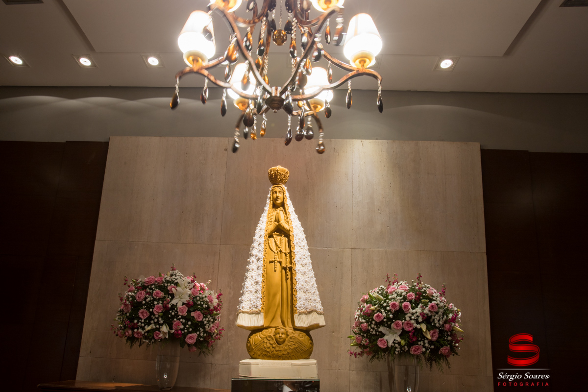 Kit/Topo de Bolo - Topo Flores AC, Terço, Taça VW, Caneta Tif Prata,Placa WC, Porta Aliança Santa da Noiva